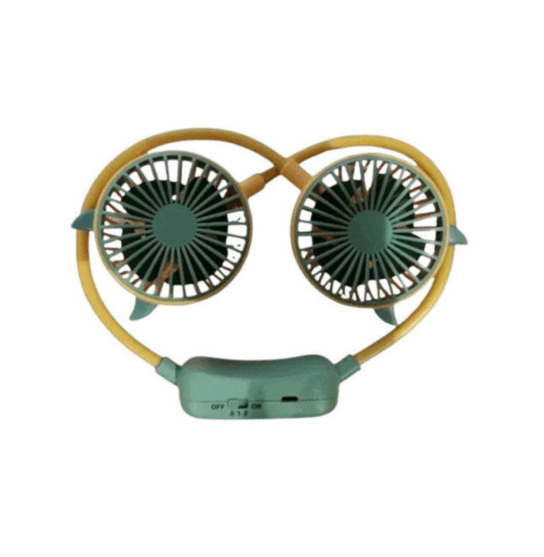 Επαναφορτιζόμενο Αναδιπλούμενο Διπλό Ανεμιστηράκι Λαιμού Πράσινο Hoomei HM-8486