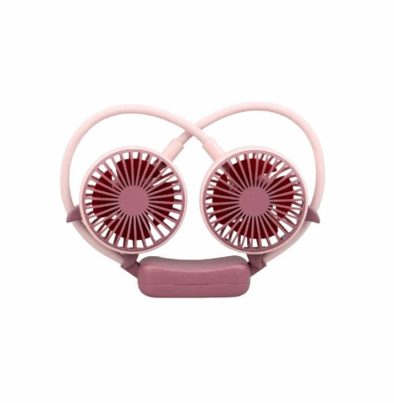 Επαναφορτιζόμενο Αναδιπλούμενο Διπλό Ανεμιστηράκι Λαιμού Ροζ Hoomei HM-8486