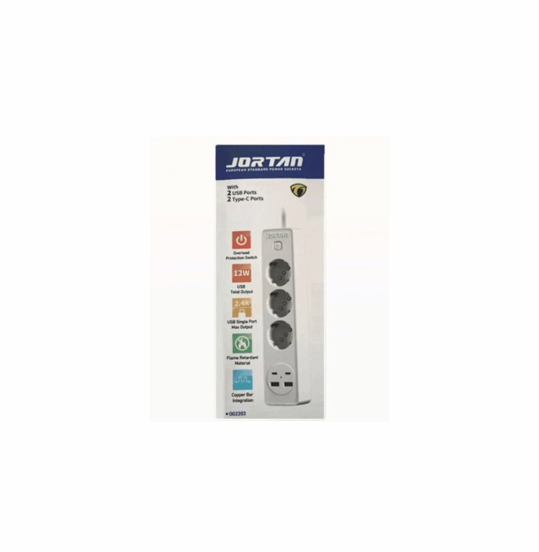 Πολύπριζο Ασφαλείας Jortan 3 Θέσεων με 2 USB-A, 2 USB-C και Διακόπτη 92005PLB00WH