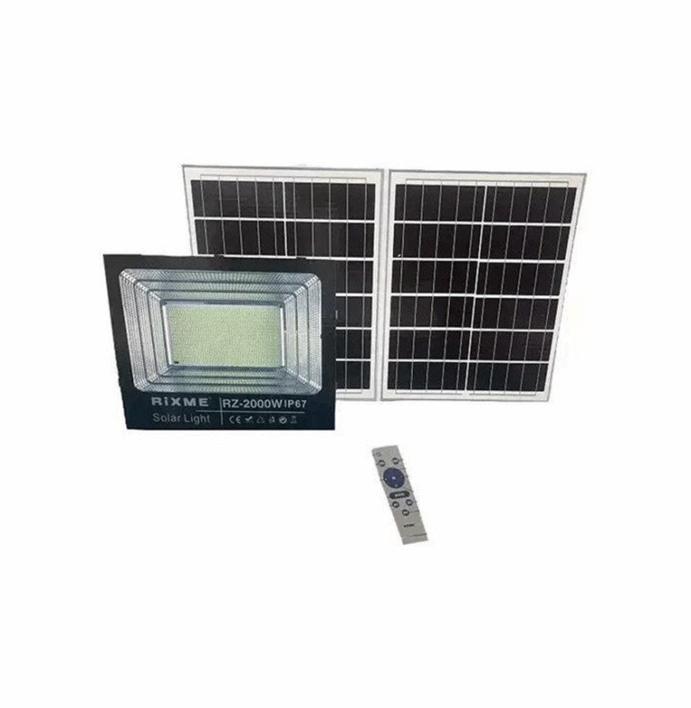 Αδιάβροχος Ηλιακός Προβολέας 2000W IP67 1600 SMD LED Με 2 Ηλιακά Πάνελ & Τηλεχειριστήριο – RiXME RZ-2000W