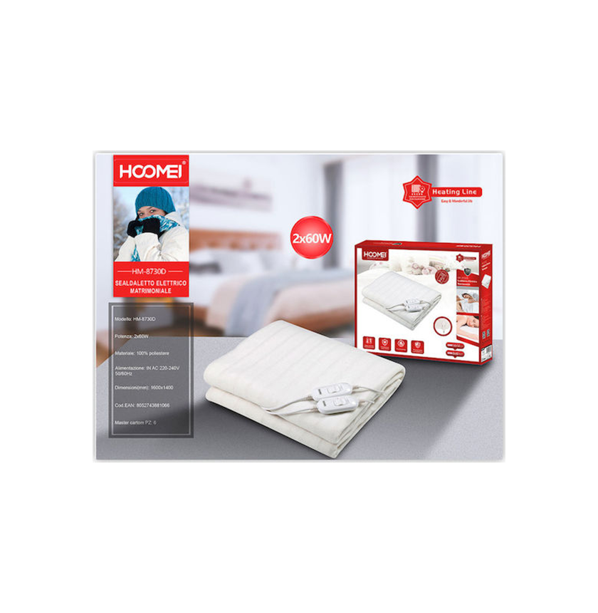 Διπλό Ηλεκτρικό Υπόστρωμα 160x140cm Hoomei HM-8730D Λευκό
