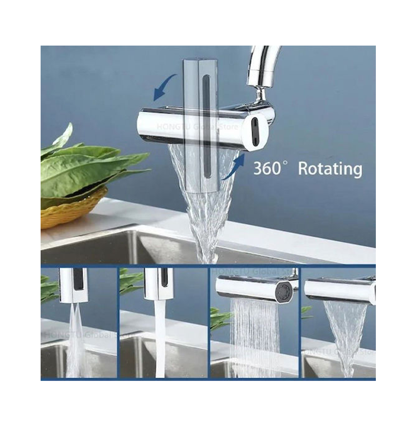 Μία περιστρεφόμενη και πτυσσόμενη προέκταση βρύσης ψεκασμού 360° με 4 σημεία περιστροφής, κατάλληλη για χρήση στον νεροχύτη ή τον νιπτήρα.