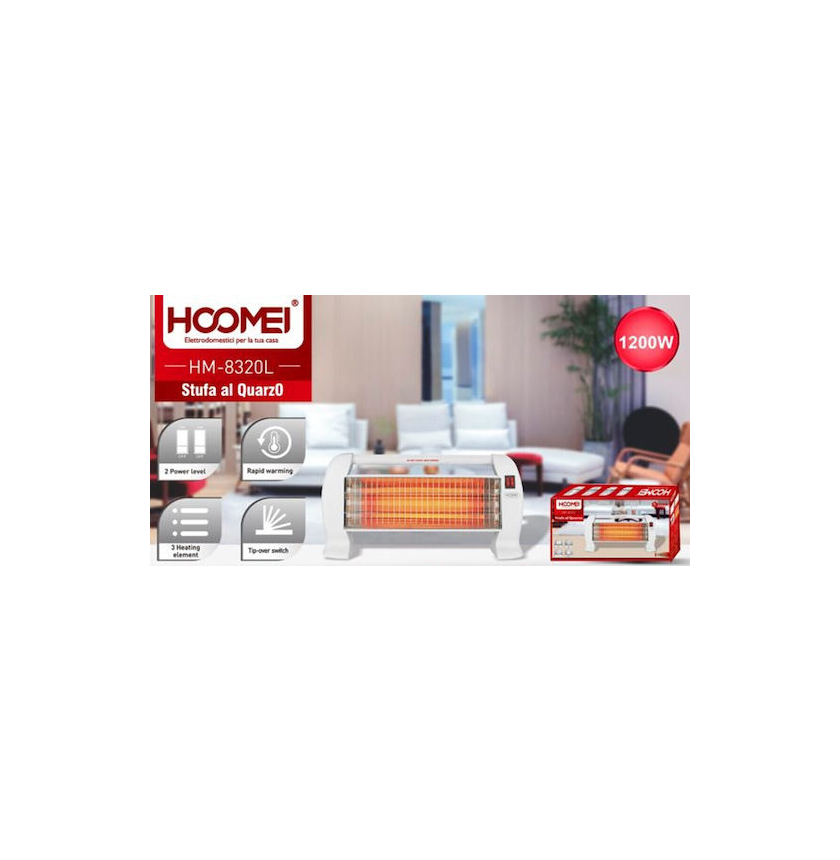Ηλεκτρική Σόμπα Χαλαζία 1200W με 2 Επίπεδα Ισχύος και 3 Θερμαντικά Στοιχεία Hoomei HM-8320L 56619628