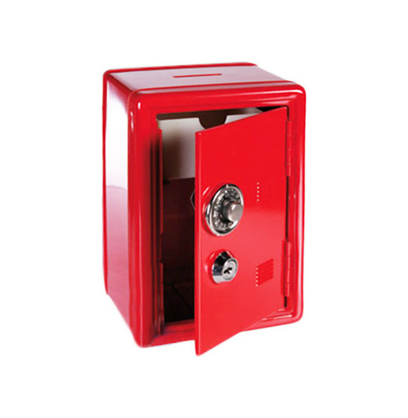 Μεταλλικός κουμπαράς σε κόκκινο χρώμα, για να αποταμιεύσετε χρήματα και παράλληλα να διακοσμήσετε τον χώρο σας. Κατασκευή από υλικό, ανθεκτικό στις πτώσεις και τις γρατζουνιές.