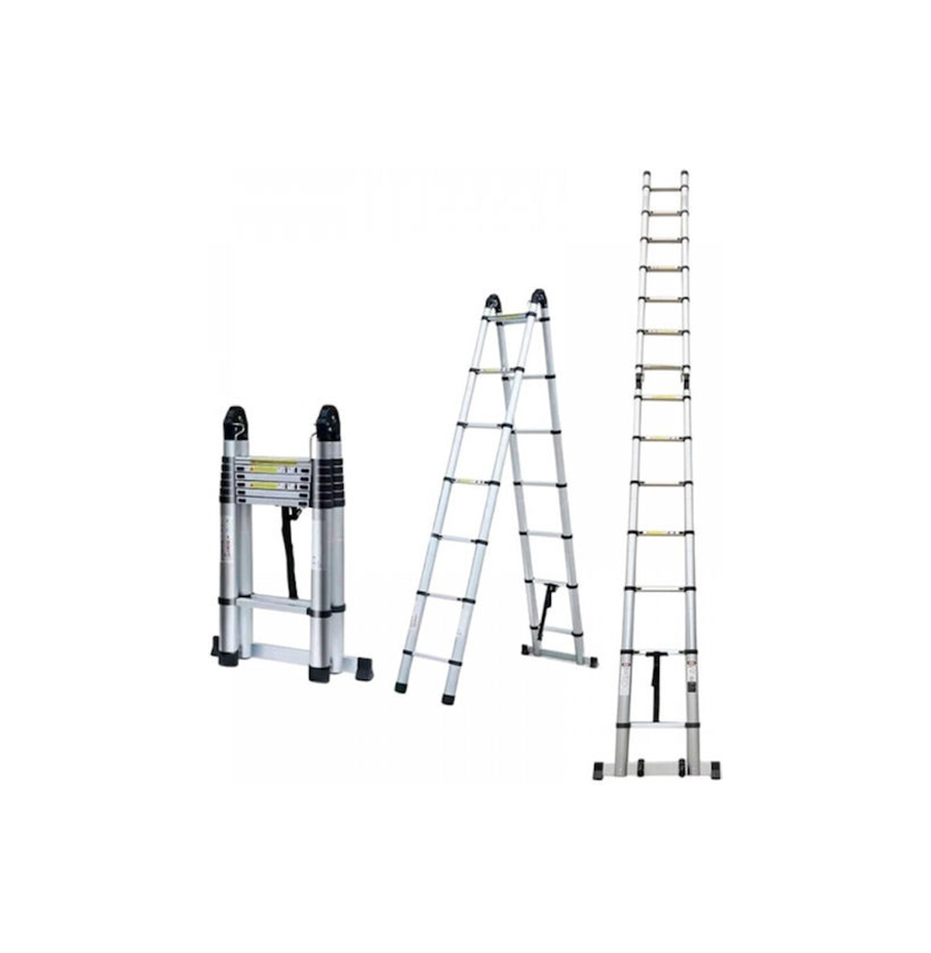 Πτυσσόμενη πολυμορφική σκάλα με στιβαρή κατασκευή αλουμινίου, και εύκολη αποθήκευση. Συνολικό μήκος έως 6.4m, ρυθμιζόμενο, με blocks ασφαλείας.