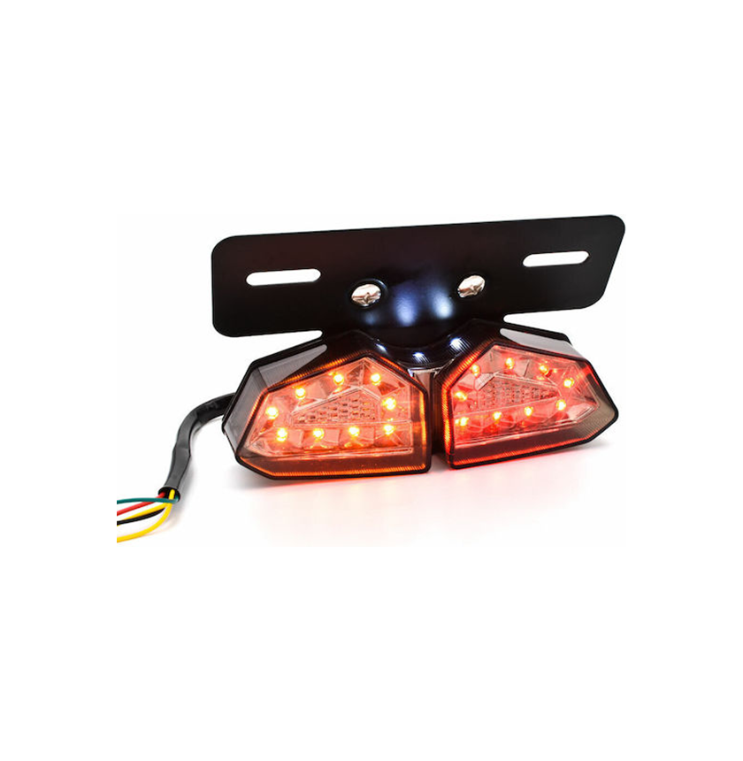 Οπίσθιο διπλό φανάρι μοτοσυκλέτας LED 12V με φλάς σε μαύρο χρώμα.