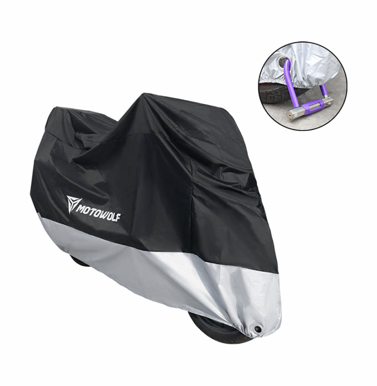 Κουκούλα Μηχανής Motowolf® Αδιάβροχη με Λάστιχο Και Ιμάντα Μαύρη-Γκρί Large 220x95x110cm