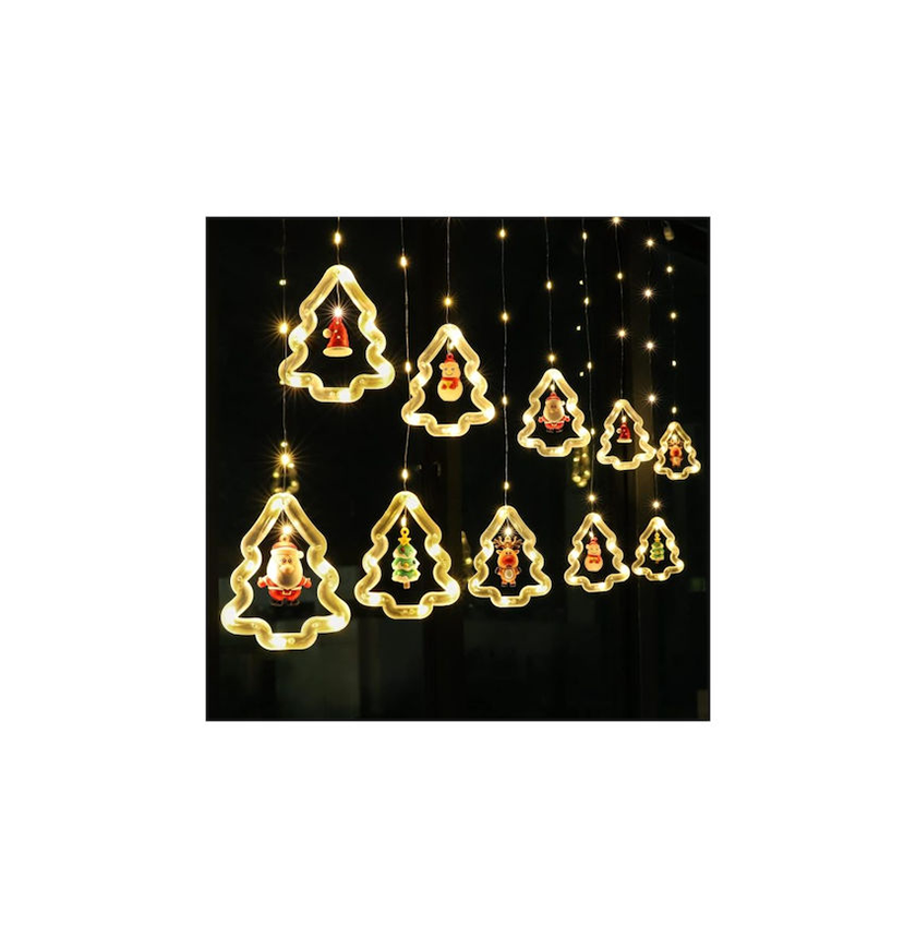 Χριστουγεννιάτικη Κουρτίνα LED Έλατα Θερμού Φωτισμού με Φιγούρες 3m Andowl Q-LED623 63692306