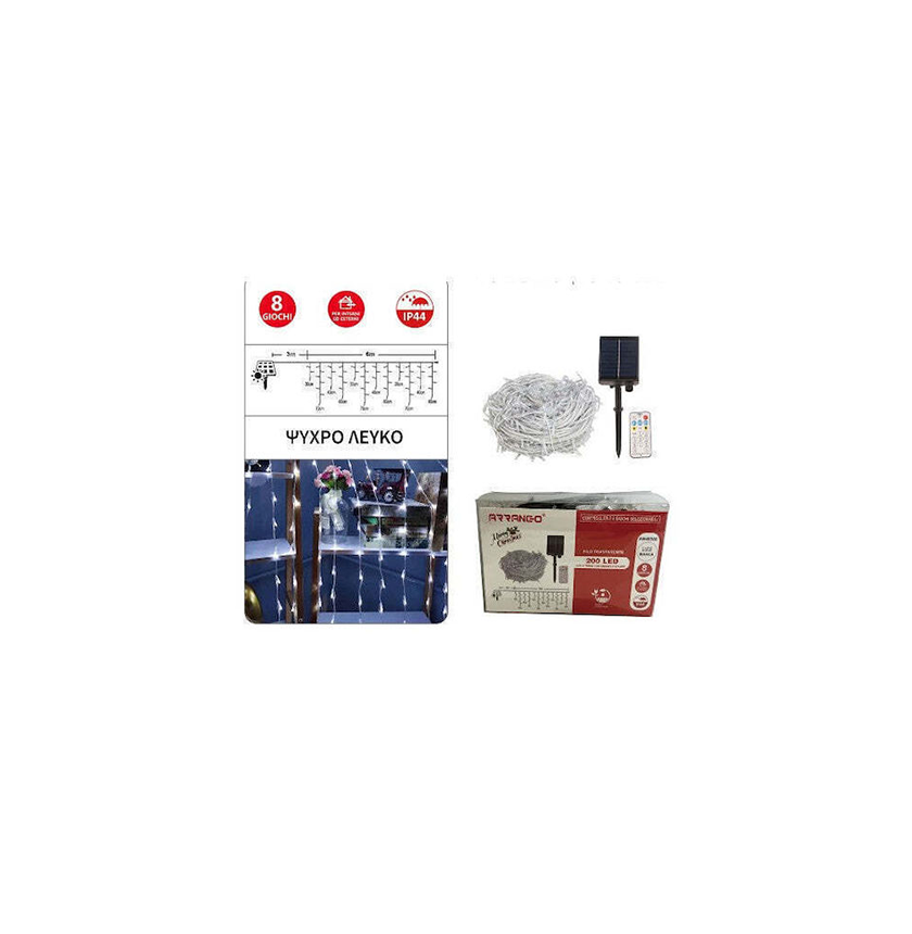 Ηλιακά Λαμπάκια Χριστουγεννιάτικα Ψυχρού Λευκού Φωτισμού 200 LED Εξωτερικού Χώρου με Φωτοβολταϊκό Πάνελ Arrango AN48366