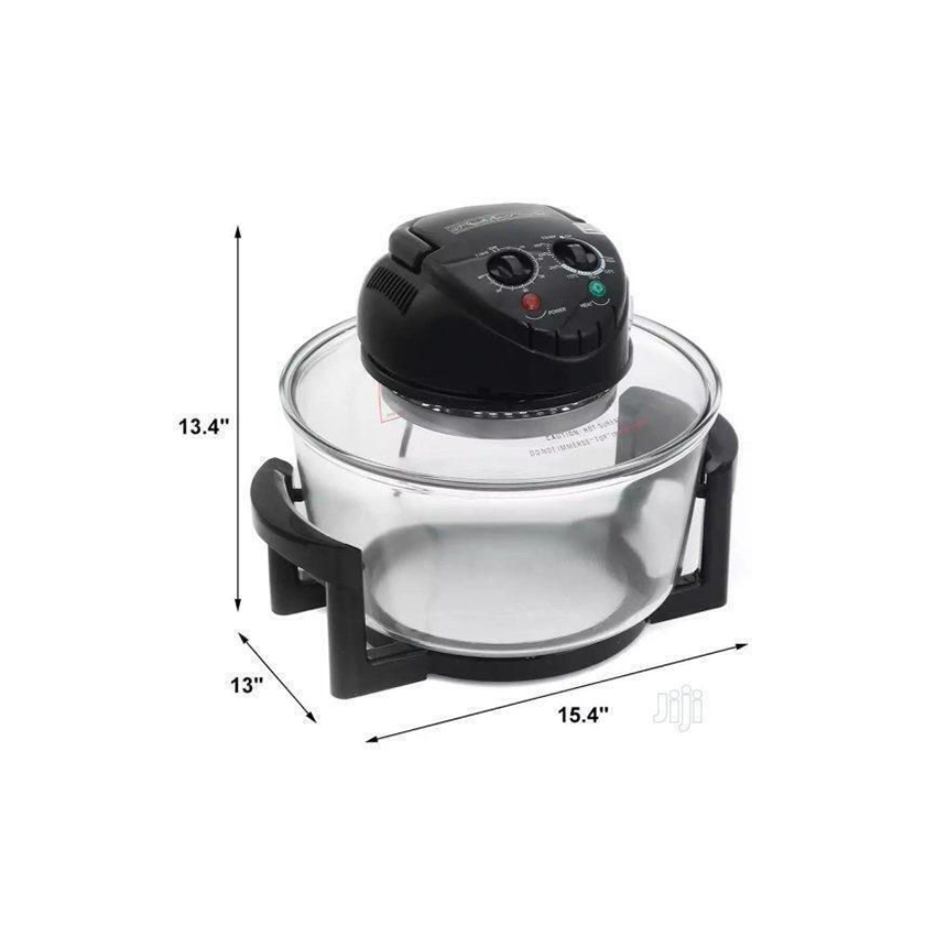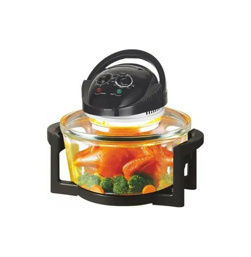 Ψήσιμο – γκριλ – τηγανητό – φρυγανιά – ξαναζέσταμα – ξεπάγωμα – μαγειρεύετε στον ατμό υγιεινό μαγείρεμα με μηδέν έως 80% λιγότερο λάδι μαγειρεύει έως και 3 φορές πιο γρήγορα από τον συμβατικό φούρνο. Με μεγάλο γυάλινο μπολ χωρητικότητας 13 λίτρων χωρίς αιθάλη και ακτινοβολία (μεταλλικά σκεύη ασφαλή). Χρονοδιακόπτης έως και 60 λεπτών & μέγιστη θερμοκρασία 250 Κελσίου.